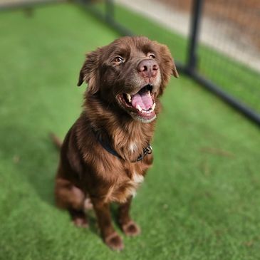 Meet Bruno! He's a seasoned boy at 5 years old. Unfortunately, his stay at Geronimo was his first experience with training, and as a big boy, he needed it! After his time with us he has his allergies under control and gets along better with other dogs. He knows his obedience commands and no longer pulls on the leash!