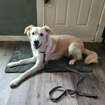 Moe is a big blonde, playful puppy! He is with Geronimo from Golden Beginnings for help with manners, boundaries, impulse control and frustration. He's well on his way to being the best boy! He has a sense of humor and thinks everything is a joke, and thinks he's so funny. He's starting to take things a little more seriously but without loosing that sparkle in his eye...just how we like it!